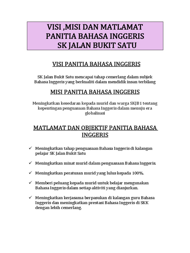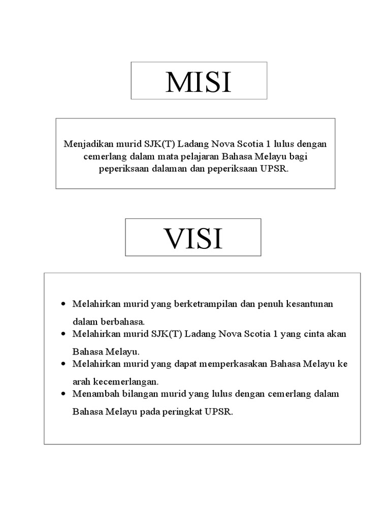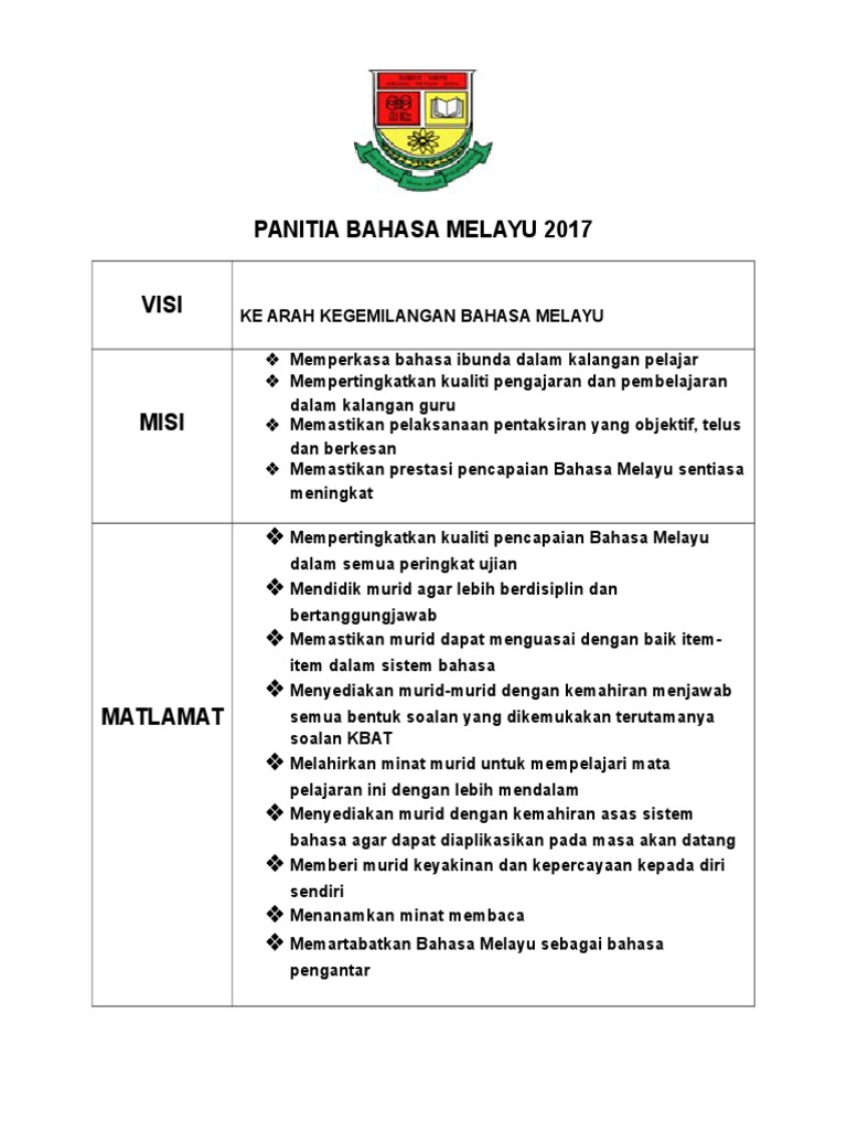 Contoh Visi Dan Misi Panitia Bahasa Melayu